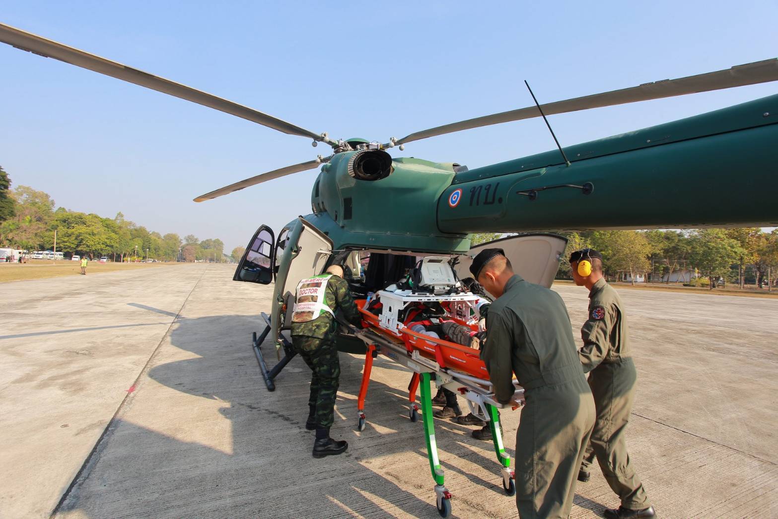 ก่อนจะทำการฝึกทบทวนการปฏิบัติ การส่งต่อผู้ป่วยวิกฤต เเละฉุกเฉิน เเบบ Dynamic โดย ฮ.ท.145 AirAmbulance ในวันที่ 8 มกราคม เป็นการปิดท้ายการฝึก