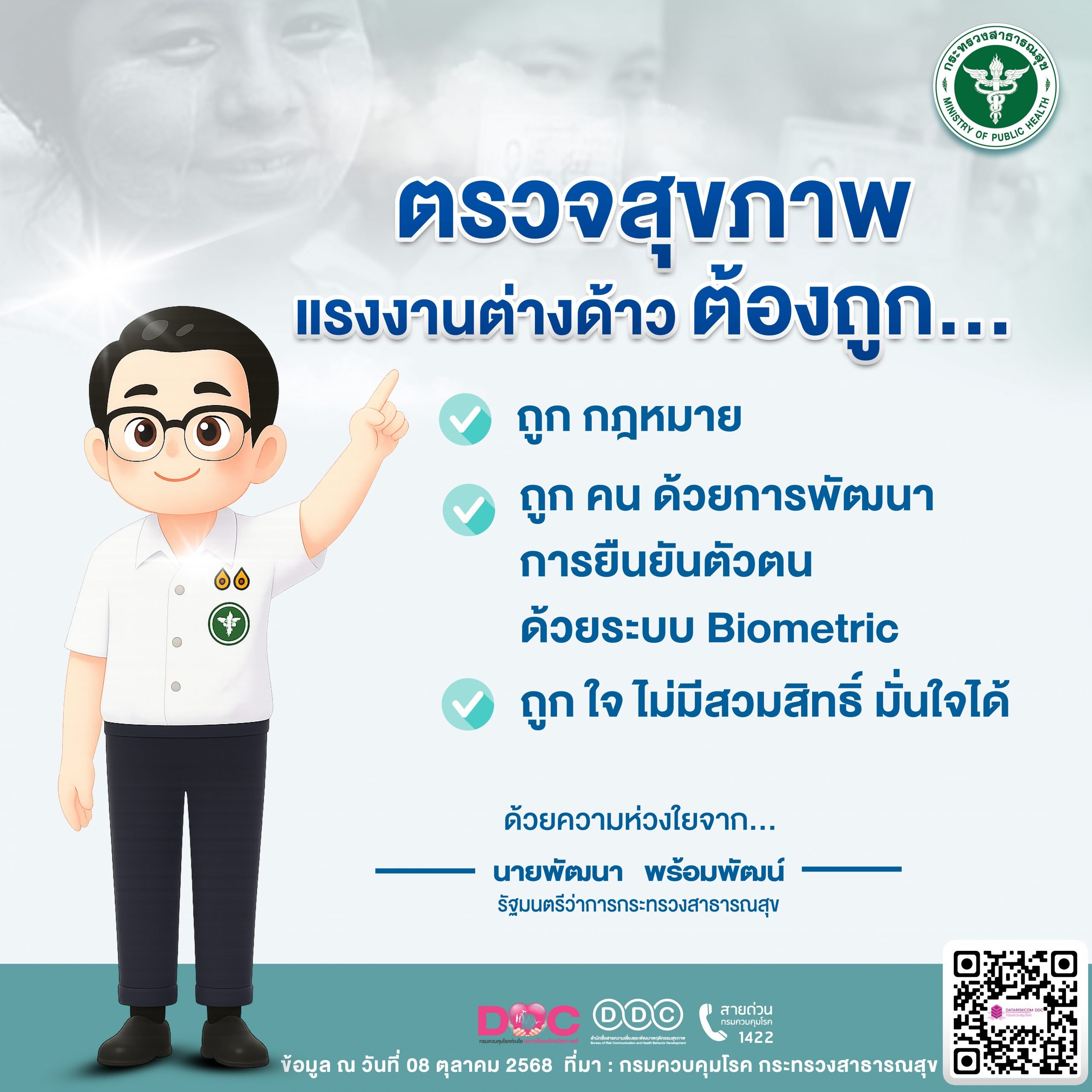 “การยืนยันตัวตนแรงงานต่างด้าวด้วยระบบไบโอเมตริกซ์ไม่เพียงช่วยป้องกันการสวมสิทธิ์แต่ยังเป็นก้าวสำคัญในการสร้างระบบสุขภาพที่ปลอดภัย โปร่งใส ตรวจสอบได้ และเป็นธรรมกับทุกฝ่าย” อธิบดีกรมควบคุมโรคกล่าวทิ้งท้าย