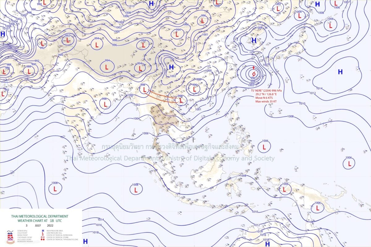 พยากรณ์อากาศประจำวันจันทร์ที่ 4 กรกฏาคม 2565