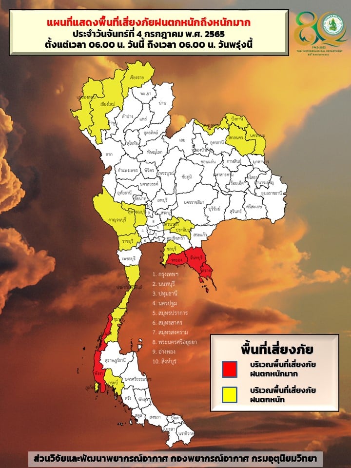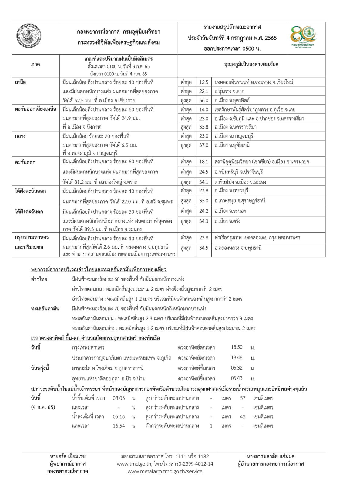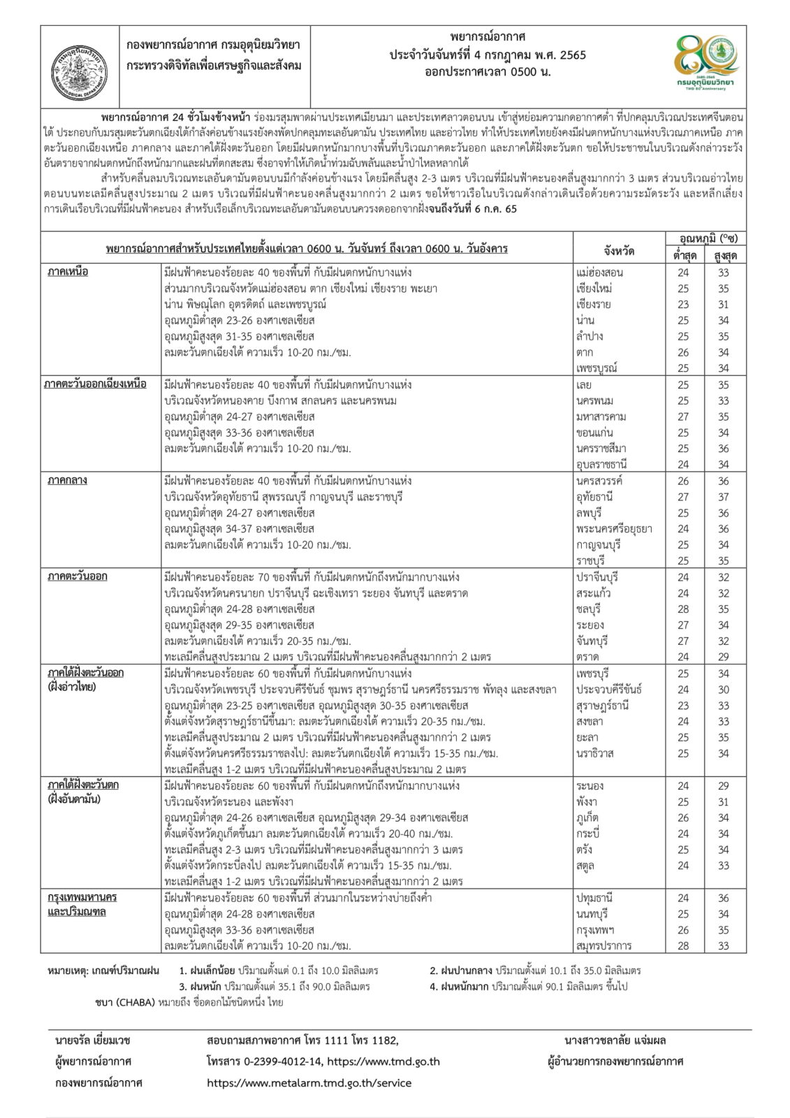 กรมอุตุนิยมวิทยา พยากรณ์ประกาศ 4 ก.ค. 65 ถึง 06.00 วันพรุ่งนี้