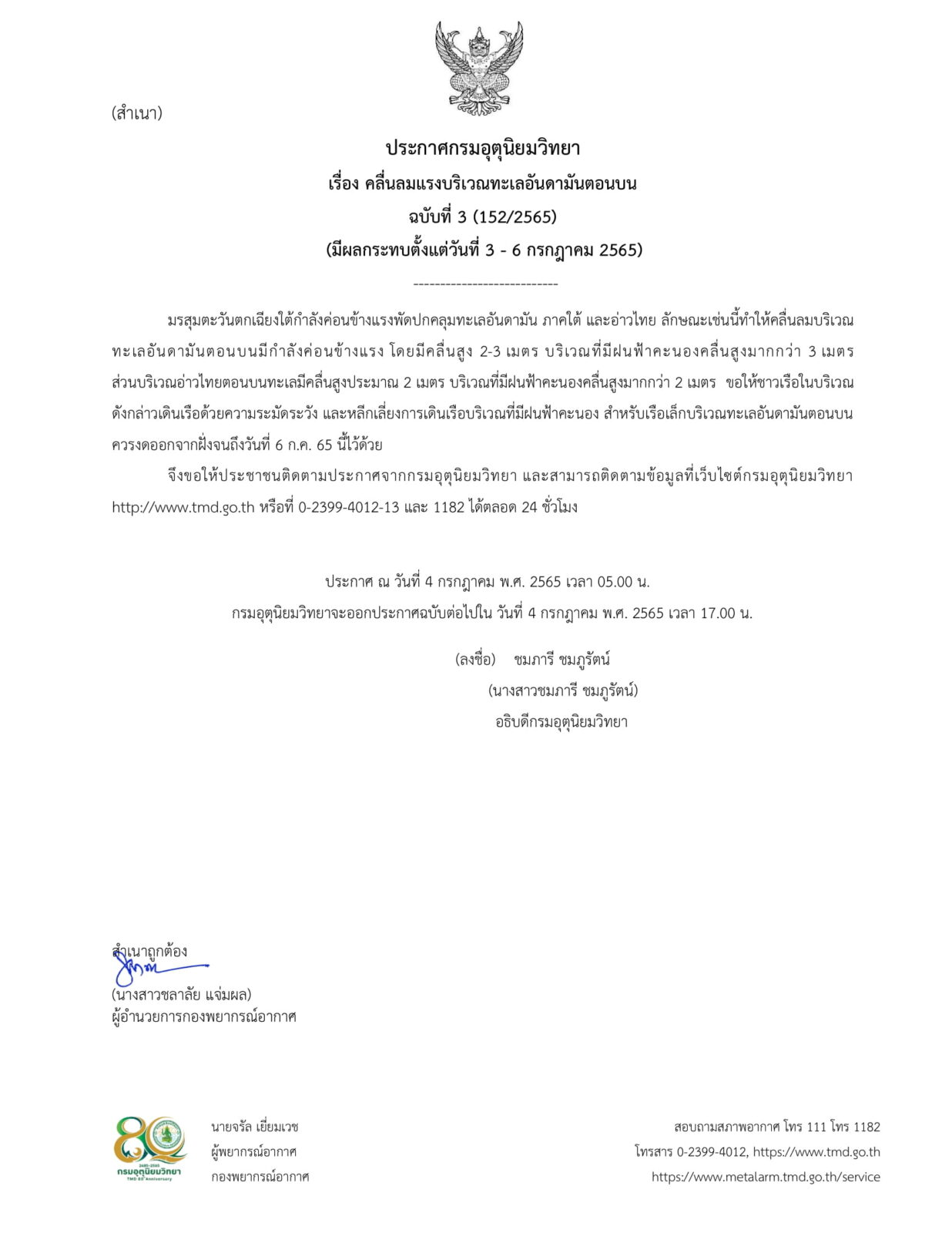ประกาศ ณ วันที่ 4 กรกฎาคม พ.ศ. 2565 เวลา 05.00 น.