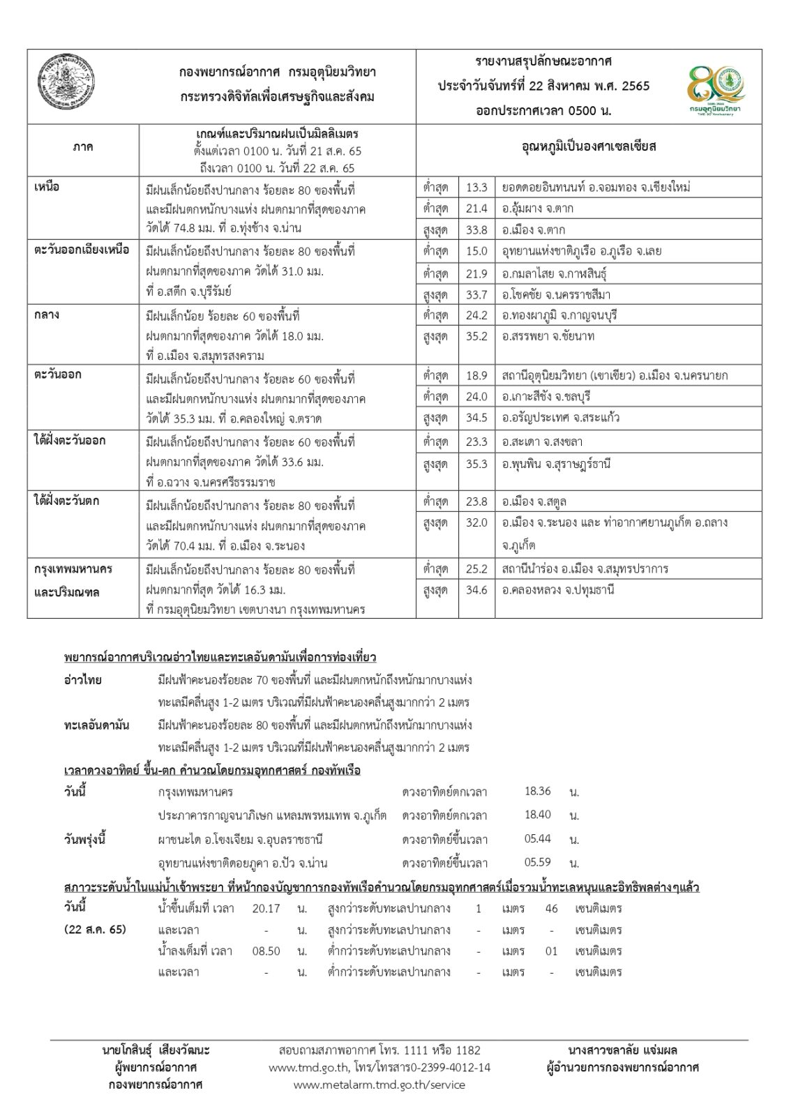 ประกาศ ณ วันที่ 22 สิงหาคม พ.ศ. 2565 เวลา 05.00 น.