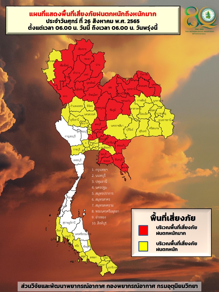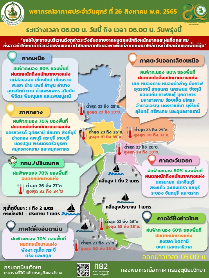 กรมอุตุนิยมวิทยาจะออกประกาศฉบับต่อไปใน วันที่ 26 สิงหาคม พ.ศ. 2565 เวลา 11.00 น.