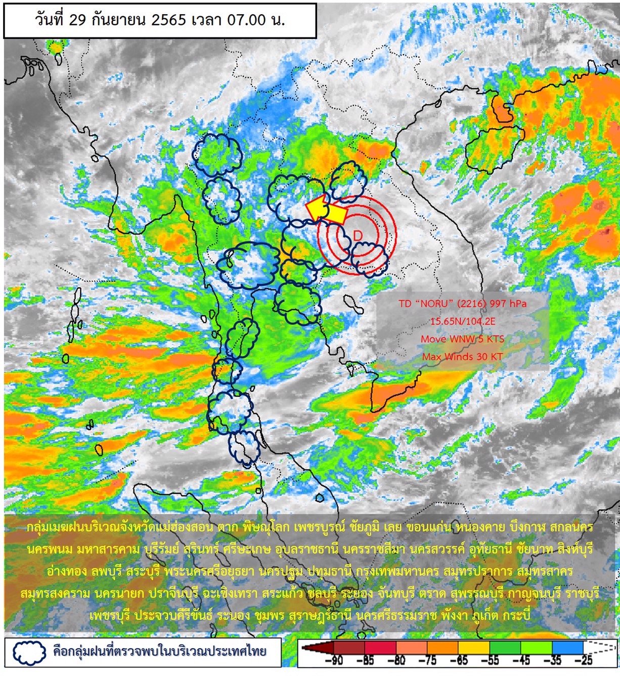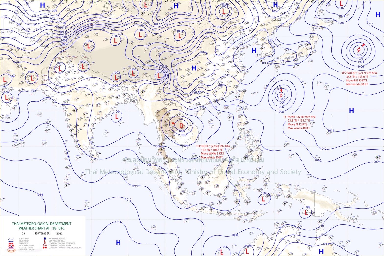 ลักษณะอากาศทั่วไป พยากรณ์อากาศ 24 ชั่วโมงข้างหน้า เมื่อเวลา 04.00 น. ของวันนี้ (29 ก.ย. 65) พายุดีเปรสชัน “โนรู”