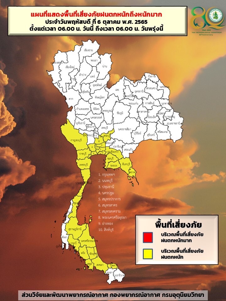 พยากรณ์อากาศประจำวันพฤหัสบดีที่ 6 ตุลาคม 2565