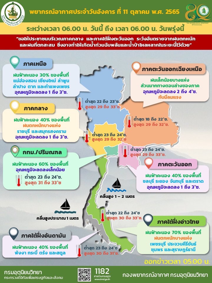 พยากรณ์อากาศประจำวันอังคาารที่ 11 ตุลาคม 2565