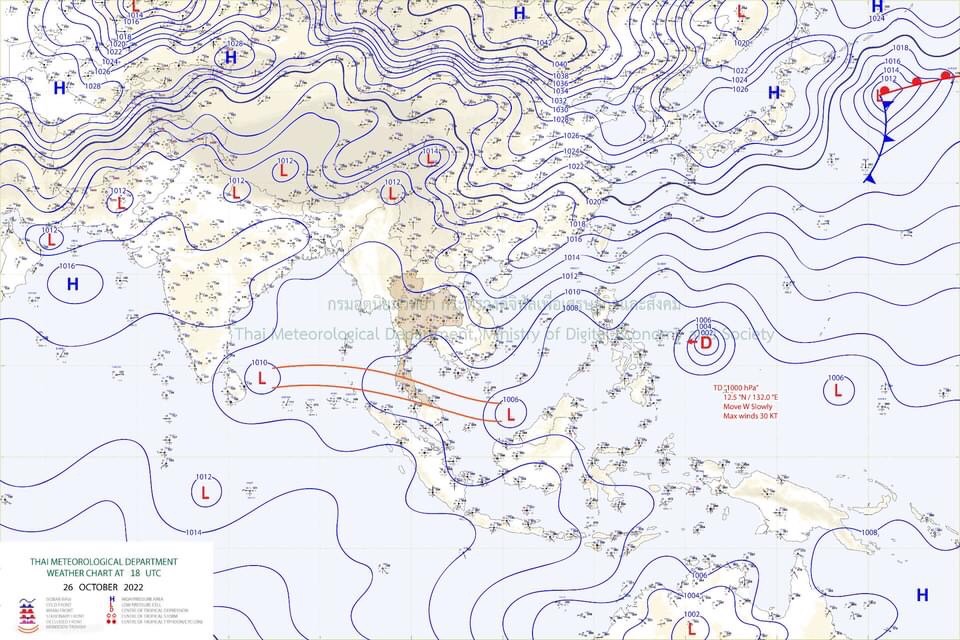 สำหรับร่องมรสุมกำลังอ่อนพาดผ่านภาคใต้ตอนล่าง ทำให้ภาคใต้ยังคงมีฝนฟ้าคะนอง และมีฝนตกหนักบางแห่งเกิดขึ้นได้