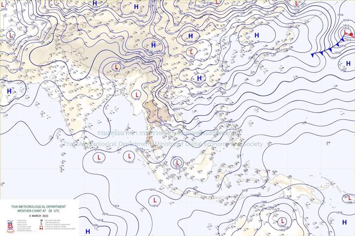 ลักษณะอากาศทั่วไป พยากรณ์อากาศ 24 ชั่วโมงข้างหน้า บริเวณความกดอากาศสูงหรือมวลอากาศเย็นกำลังปานกลางปกคลุมประเทศไทยตอนบน และทะเลจีนใต้ ลักษณะเช่นนี้ทำให้ภาคเหนือและภาคตะวันออกเฉียงเหนือมีอากาศเย็นถึงหนาวในตอนเช้า ส่วนภาคกลางรวมทั้งกรุงเทพมหานครและปริมณฑล และภาคตะวันออก มีอากาศเย็นในตอนเช้า ขอให้ประชาชนในบริเวณดังกล่าวดูแลรักษาสุขภาพเนื่องจากสภาพอากาศที่หนาวเย็น รวมถึงระวังอันตรายจากอัคคีภัยที่อาจจะเกิดขึ้นเนื่องจากสภาพอากาศแห้งในระยะนี้ไว้ด้วย
