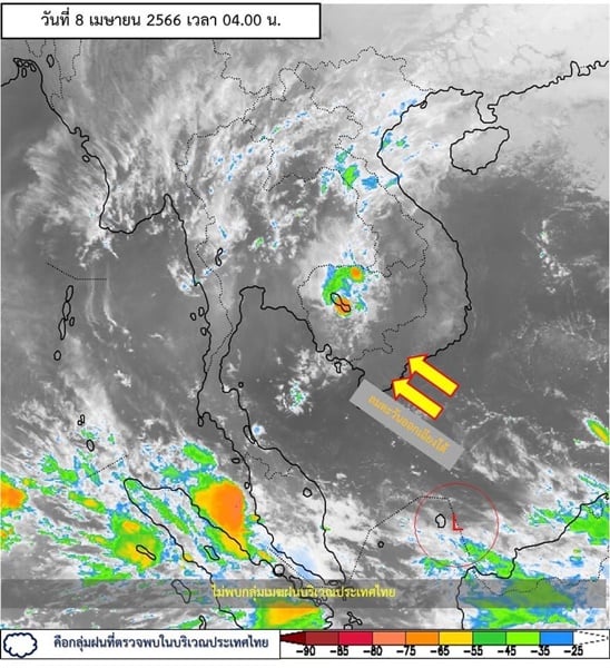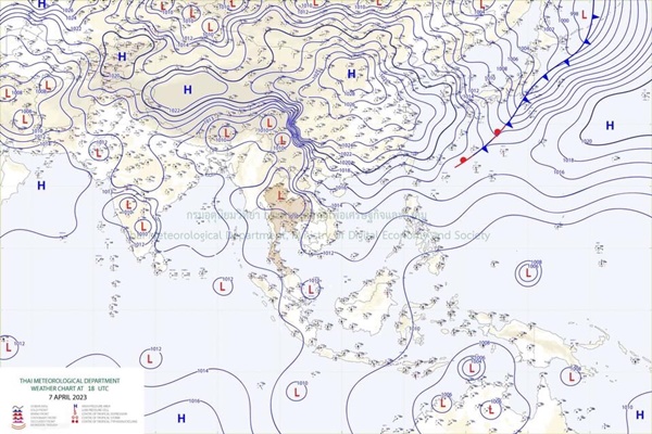 ลักษณะอากาศทั่วไป พยากรณ์อากาศ 24 ชั่วโมงข้างหน้า บริเวณความกดอากาศสูงหรือมวลอากาศเย็นกำลังปานกลาง ได้แผ่ปกคลุมทะเลจีนใต้ ภาคตะวันออกเฉียงเหนือ ภาคตะวันออก และภาคกลาง รวมทั้งกรุงเทพมหานครและปริมณฑลแล้ว ส่งผลทำให้ลมใต้และลมตะวันออกเฉียงใต้ ที่พัดนำความชื้นจากอ่าวไทยและทะเลจีนใต้ เข้ามาปกคลุมประเทศไทยตอนบนมีกำลังแรงขึ้น ในขณะที่บริเวณประเทศไทยตอนบนมีอากาศร้อน ลักษณะเช่นนี้ทำให้บริเวณดังกล่าว จะมีพายุฤดูร้อนเกิดขึ้น โดยมีลักษณะของพายุฝนฟ้าคะนอง ลมกระโชกแรง และลูกเห็บตกบางแห่ง รวมถึงอาจมีฟ้าผ่าเกิดขึ้นได้บางพื้นที่ จึงขอให้ประชาชนในบริเวณดังกล่าว ระวังอันตรายจากพายุฤดูร้อนที่อาจจะเกิดขึ้น โดยหลีกเลี่ยงการอยู่ในที่โล่งแจ้ง ใต้ต้นไม้ใหญ่ สิ่งปลูกสร้างและป้ายโฆษณาที่ไม่แข็งแรง สำหรับเกษตรกรควรเตรียมการป้องกัน และระวังความเสียหายที่จะเกิดต่อผลผลิตทางการเกษตร และอันตรายต่อสัตว์เลี้ยงไว้ด้วย
