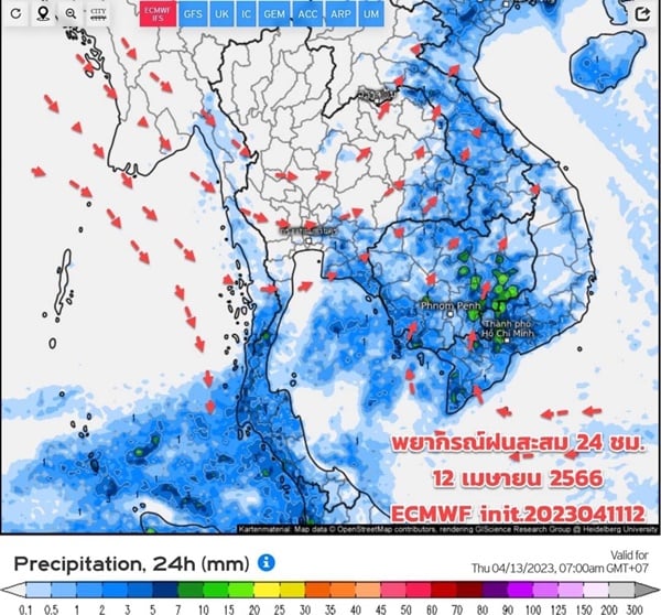 พยากรณ์อากาศสำหรับประเทศไทย 06:00 น. วันนี้ ถึง 06:00 น. วันพรุ่งนี้