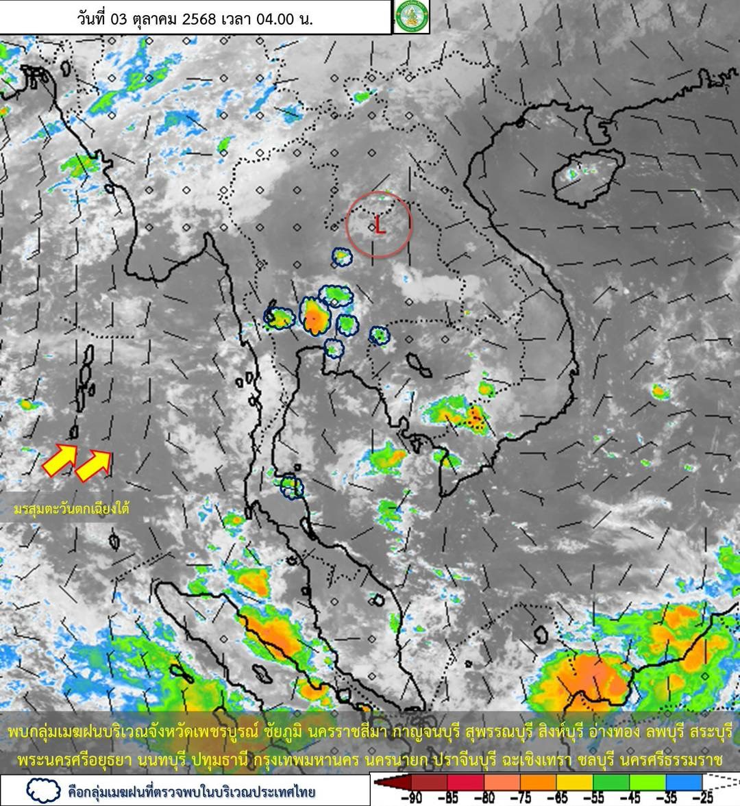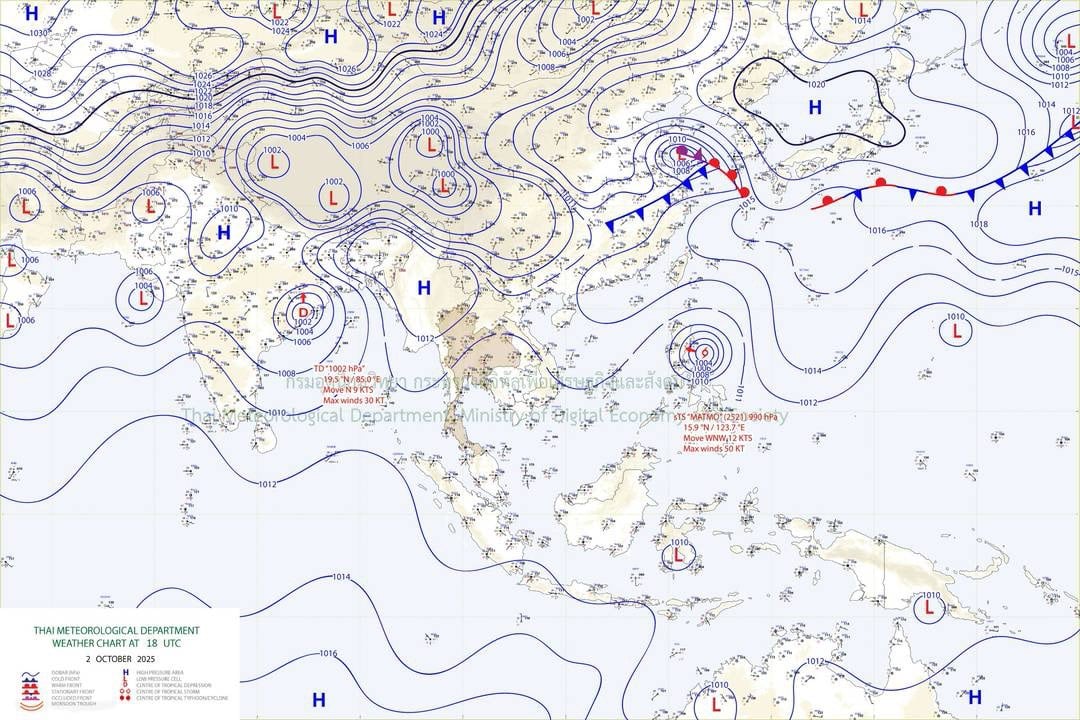 อนึ่ง พายุโซนร้อน”แมตโม” ปกคลุมบริเวณเกาะลูซอน ประเทศฟิลิปปินส์ คาดว่าจะเคลื่อนลงทะเลจีนใต้ตอนบนในวันที่ 3 ต.ค. 68 และในช่วงวันที่ 5-6 ต.ค. 68 จะเคลื่อนขึ้นฝั่งบริเวณประเทศเวียดนามตอนบน โดยพายุนี้ไม่เคลื่อนเข้าสู่ประเทศไทย