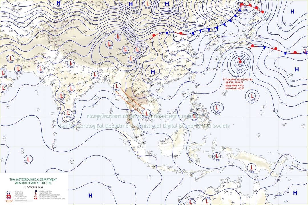 ลักษณะอากาศทั่วไป พยากรณ์อากาศ 24 ชั่วโมงข้างหน้า ประเทศไทยมีฝนเพิ่มขึ้นและมีฝนตกหนักบางแห่ง ขอให้ประชาชนระวังอันตรายจากฝนตกหนักไว้ด้วย ทั้งนี้เนื่องจากร่องมรสุมพาดผ่านภาคเหนือ ภาคกลาง และภาคตะวันออก ในขณะที่มรสุมตะวันตกเฉียงใต้พัดปกคลุมทะเลอันดามัน ภาคใต้ และอ่าวไทย