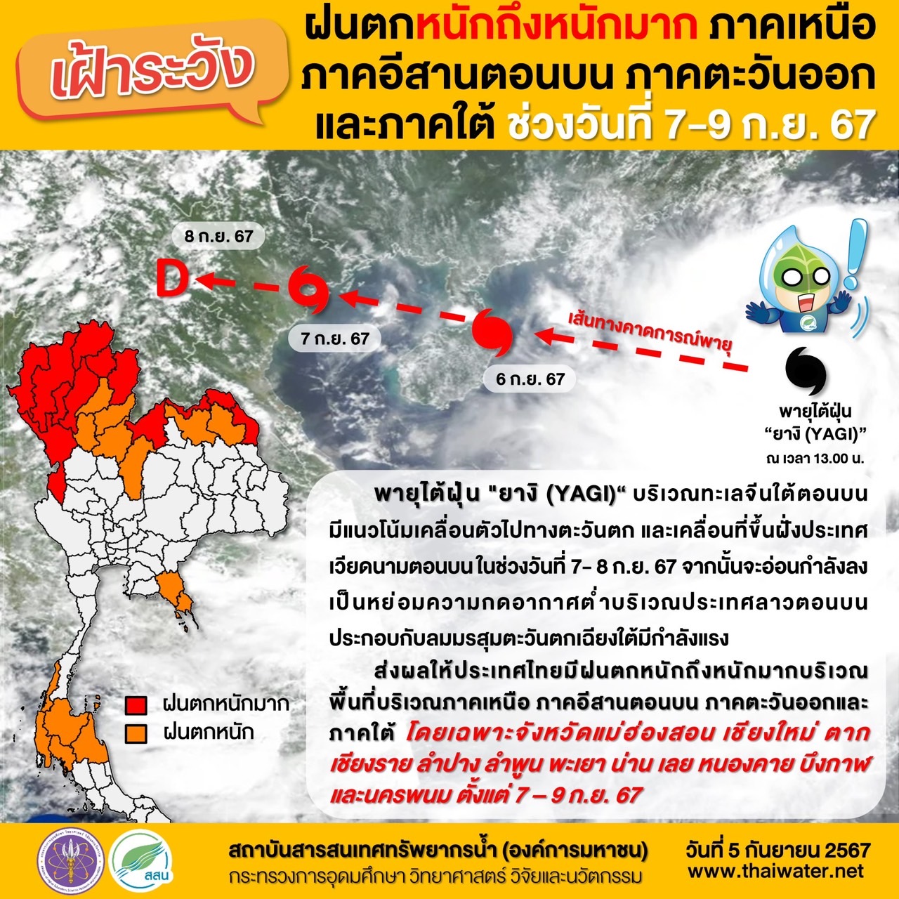ทางเรดาร์อมก๋อย แจ้งว่าตรวจพบกลุ่มฝนในระดับ 1-5 บริเวณภาคเหนือฝั่งตะวันตกจังหวัด แม่ฮ่องสอน เชียงใหม่ ลำพูน ตาก (ส่วนมากทางทิศใต้ของจังหวัด)เป็นลมมรสุมตะวันตกเฉียงใต้ที่พายุยางิ ดึงลมมรสุมพัดสอบเข้ามา ไม่ใช่ผลจากพายุโดยตรง