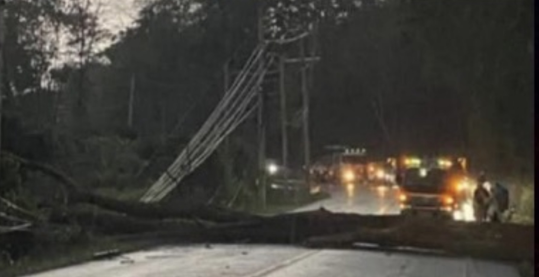 2.ถนนทางหลวงหมายเลข 108 ฮอด-แม่สะเรียง ช่วง กม.8-9 มีเหตุต้นไม้ใหญ่ล้มทับสายไฟและขวางทาง